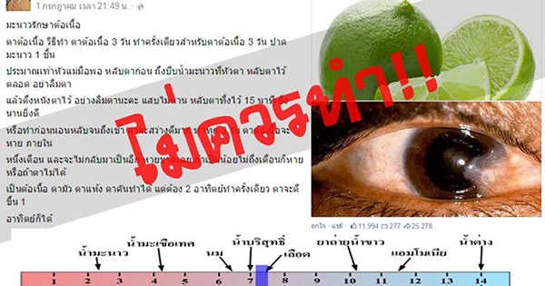 เตือน มะนาวหยอดตารักษาต้อเนื้อ ไม่จริง ชี้เป็นอันตรายต่อลูกตาโดยตรง