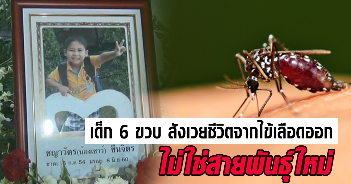 กรมควบคุมโรค ชี้เคสเด็ก 6 ขวบ สังเวยชีวิตจากไข้เลือดออก ไม่ใช่สายพันธุ์ใหม่