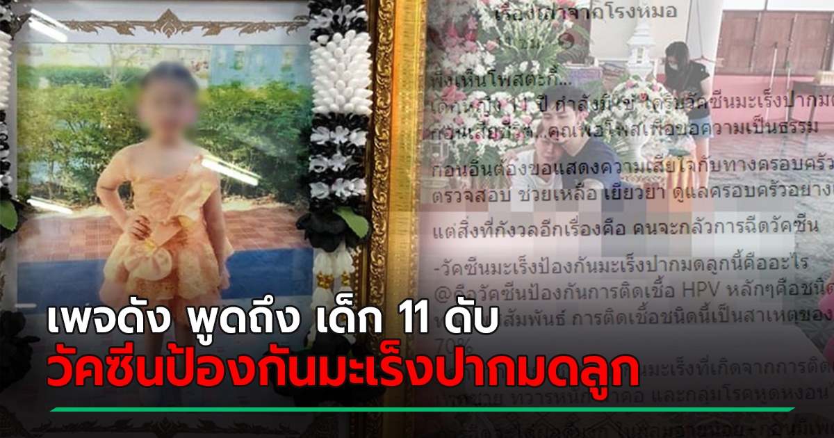 เพจดัง พูดถึง วัคซีนป้องกันมะเร็งปากมดลูก หลังเด็ก 11 ดับ ยันความเสี่ยงน้อย
