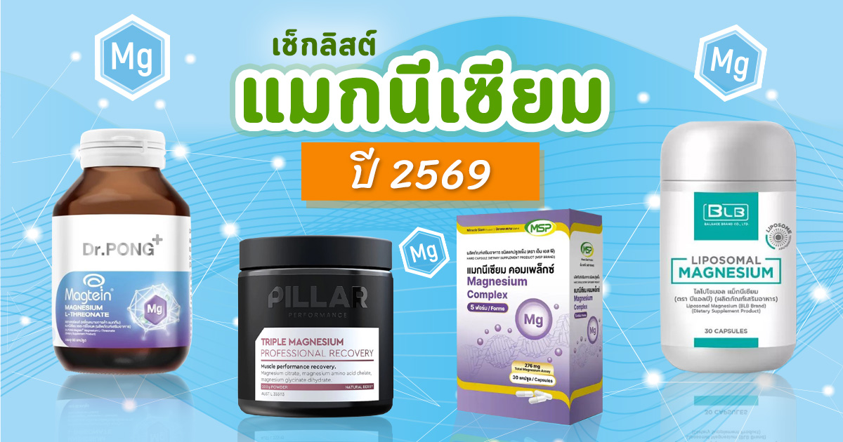 แมกนีเซียม ยี่ห้อไหนดี ก่อนซื้อควรรู้ว่า แมกนีเซียมมีกี่ฟอร์ม และแต่ละรูปแบบมีจุดเด่นต่างกัน เพื่อให้เลือกได้ตรงกับความต้องการ แมกนีเซียม เป็นอาหารเสริมที่ได้รับความนิยมมากขึ้นในช่วง 1-2 ปีที่ผ่านมา เนื่องจากเป็นแร่ธาตุสำคัญที่มีบทบาทต่อกระบวนการทำงานของร่างกายในหลายระบบ จึงส่งผลดีต่อสุขภาพ ในหลากหลายด้าน อย่างไรก็ตาม แมกนีเซียมมีให้เลือกหลายรูปแบบ ทำให้หลายคนสับสนว่าจะเลือกแบบไหนถึงจะเหมาะกับตัวเอง หรือควรเลือก แมกนีเซียม ยี่ห้อไหนดี วันนี้ชวนมาทำความเข้าใจกันค่ะ ทั้งนี้ ตามคำแนะนำด้านโภชนาการ ร่างกายควรได้รับแมกนีเซียมประมาณ 310-420 มิลลิกรัมต่อวัน โดยปริมาณที่เหมาะสมจะแตกต่างกันไปตามอายุและเพศ ซึ่งหากได้รับจากอาหารไม่เพียงพอ การพิจารณาอาหารเสริมก็อาจเป็นอีกหนึ่งทางเลือกค่ะ แมกนีเซียมมีหลายรูปแบบสารประกอบ (forms) ที่ต่างกันตามสารที่จับอยู่ด้วย ทำให้การดูดซึม การออกฤทธิ์ และการใช้งานแตกต่างกัน โดยรวมแล้วมีมากกว่า 10 รูปแบบ แต่ที่นิยมนำมาใช้ในผลิตภัณฑ์เสริมอาหารจะมีอยู่ไม่กี่กลุ่ม ได้แก่ เกิดจากการรวมตัวของแมกนีเซียมกับกรดอะมิโนไกลซีน (Glycine) ทำให้ดูดซึมได้ดีและร่างกายนำไปใช้ได้อย่างมีประสิทธิภาพ จุดเด่นคือค่อนข้างอ่อนโยนต่อระบบทางเดินอาหาร และมักทำให้เกิดอาการท้องเสียน้อยกว่าบางรูปแบบ โดยมีข้อมูลว่า การเสริมแมกนีเซียมชนิดนี้อาจมีส่วนช่วยสนับสนุนการผ่อนคลาย ลดความเครียด และช่วยให้คุณภาพการนอนหลับดีขึ้นในบางราย เป็นรูปแบบที่ละลายน้ำได้ดีและดูดซึมได้ค่อนข้างดี ประโยชน์เด่นของฟอร์มนี้คือช่วยดึงน้ำเข้าสู่ลำไส้ จึงมักใช้บรรเทาอาการท้องผูกเป็นครั้งคราว อย่างไรก็ตาม อาจทำให้เกิดอาการถ่ายเหลวได้ในบางราย โดยเฉพาะเมื่อรับประทานในปริมาณสูง แม้ร่างกายจะดูดซึมรูปแบบนี้ได้น้อยกว่ารูปแบบอื่น แต่มีจุดเด่นคือ มีปริมาณเนื้อแร่ธาตุ (Elemental Magnesium) ต่อเม็ดสูง จึงนิยมใช้เพื่อเสริมระดับแมกนีเซียมให้เพียงพอต่อความต้องการของร่างกายในราคาที่ประหยัดและหาซื้อง่าย โดยมีงานวิจัยระบุว่า แมกนีเซียมออกไซด์มีส่วนช่วยลดความถี่ของอาการปวดหัวไมเกรน รวมถึงช่วยบรรเทาปัญหาทางเดินอาหาร เช่น อาการจุกเสียดแน่นท้องจากกรดเกิน หรืออาการท้องผูกในระยะสั้น เป็นรูปแบบที่ถูกพัฒนาขึ้นเพื่อเพิ่มระดับแมกนีเซียมในสมอง โดยมีงานวิจัยบางส่วนพบว่า แมกนีเซียมรูปแบบนี้อาจเกี่ยวข้องกับการทำงานด้านความจำ การเรียนรู้ และสมาธิ รวมถึงอาจมีส่วนช่วยด้านคุณภาพการนอนและอารมณ์ เป็นรูปแบบที่จับกับกรดมาลิก ซ