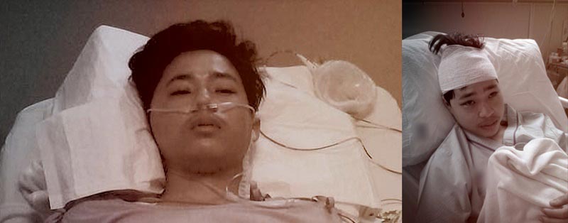 วินาทีที่กำลังขับเคี่ยวกันบนถนน จู่ ๆ รถคันหน้าดันเบรกกะทันหัน จนเต้หยุดรถไม่ทันชนท้ายเข้าอย่างจัง แรงกระแทกทำให้ตัวเขากระเด็น หัวฟาดพื้นอย่างแรง ... แต่ที่สำคัญก็คือ ดันเป็นหัวเปล่า ๆ ที่ไม่ได้สวมหมวกกันน็อก !