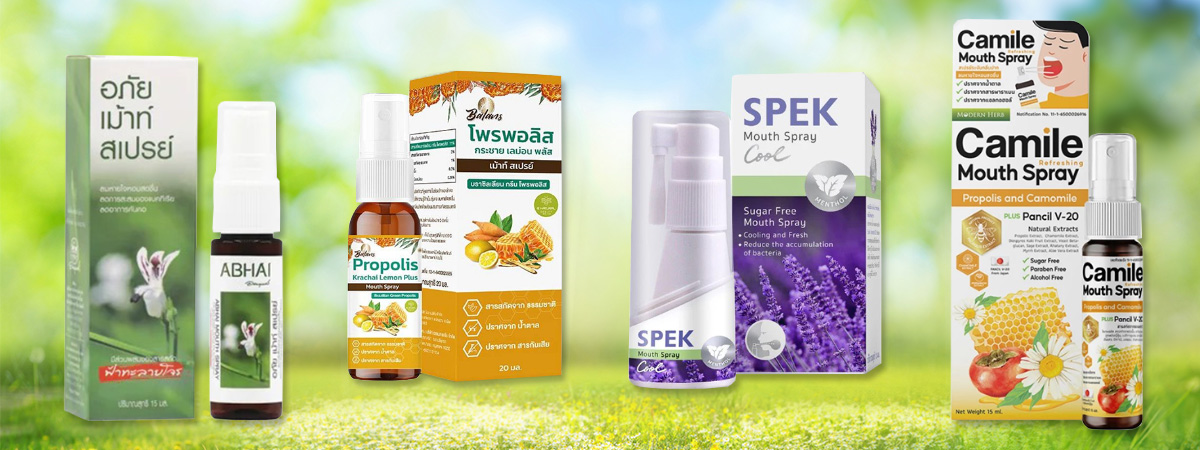 สเปรย์บางชนิดมีคุณสมบัติช่วยลดการสะสมของแบคทีเรีย ซึ่งเป็นสาเหตุหนึ่งของอาการระคายคอและกลิ่นปาก
