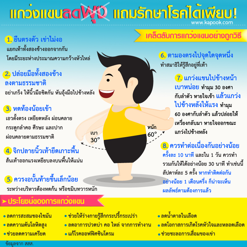 ประโยชน์จากการแกว่งแขนที่พูดกันไปไกล บางคนถึงขั้นพูดว่าที่ช่วยให้ผอมได้เพราะเป็นศาสตร์เก่าแก่จากจีน (ซึ่งไม่คอนเฟิร์มว่าชัวร์หรือมั่วนิ่ม) นั้น คุณหมออธิบายให้เข้าใจได้ง่าย ๆ ว่า