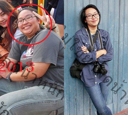 จนกระทั่งวันหนึ่งไปงานรับปริญญาของเพื่อน ไปแสดงความยินดีถ่ายรูปกัน เพื่อน ๆ ก็แทครูปมาให้ในเฟสค่ะ สิ่งที่เราเห็นเป็นสิ่งที่เราไม่คิดค่ะ ว่าจะเกิดขึ้นกับตัวเราได้ คือเราอ้วนมาก เหมือนตัวจะระเบิดอะ (ช่วงนั้นหนักประมาณ 80 กิโลกรัม) พอมาเห็นรูปเราก็มานึกได้ ว่าอยากให้งานรับปริญญาของตัวเองเป็นยังไง (เพิ่งจบค่ะ กำลังจะรับปริญญา เดือน พ.ย. 56) เราก็เลยเริ่มลดน้ำหนักมาเลยอะ ตั้งแต่ช่วงเดือนเมษายน 2556 เราเปลี่ยนพฤติกรรมการกินค่ะ จากเคยกินข้าว 2-3 จาน ก็ลดมาเหลือ 1 จาน เริ่มออกกำลังกายมากขึ้น จากปกติใช้ ลิฟท์ เราเปลี่ยนมาเดินขึ้นบันได ขึ้นบันได 8 ชั้น เดินขึ้นลงวันละประมาณ 5 รอบ น้ำหนักก็เริ่มลงแล้วค่ะ จากน้ำหนัก 80 กิโลกรัม เริ่มลงมาเป็น 57 กิโลกรัม(ช่วงเดือน พ.ย. 56) ช่วงนี้แค่เปลี่ยนพฤติกรรมการกินนะคะ ไม่ได้ออกกำลังกายจริงจัง